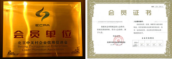 2013年4月24日,我公司憑借在經(jīng)營、信貸、納稅等方面較高信譽度、良好的企業(yè)經(jīng)營業(yè)績和財務(wù)狀況,順利通過中關(guān)村企業(yè)信用促進會審核,正式成為北京中關(guān)村企業(yè)信用促進會的會員企業(yè)。